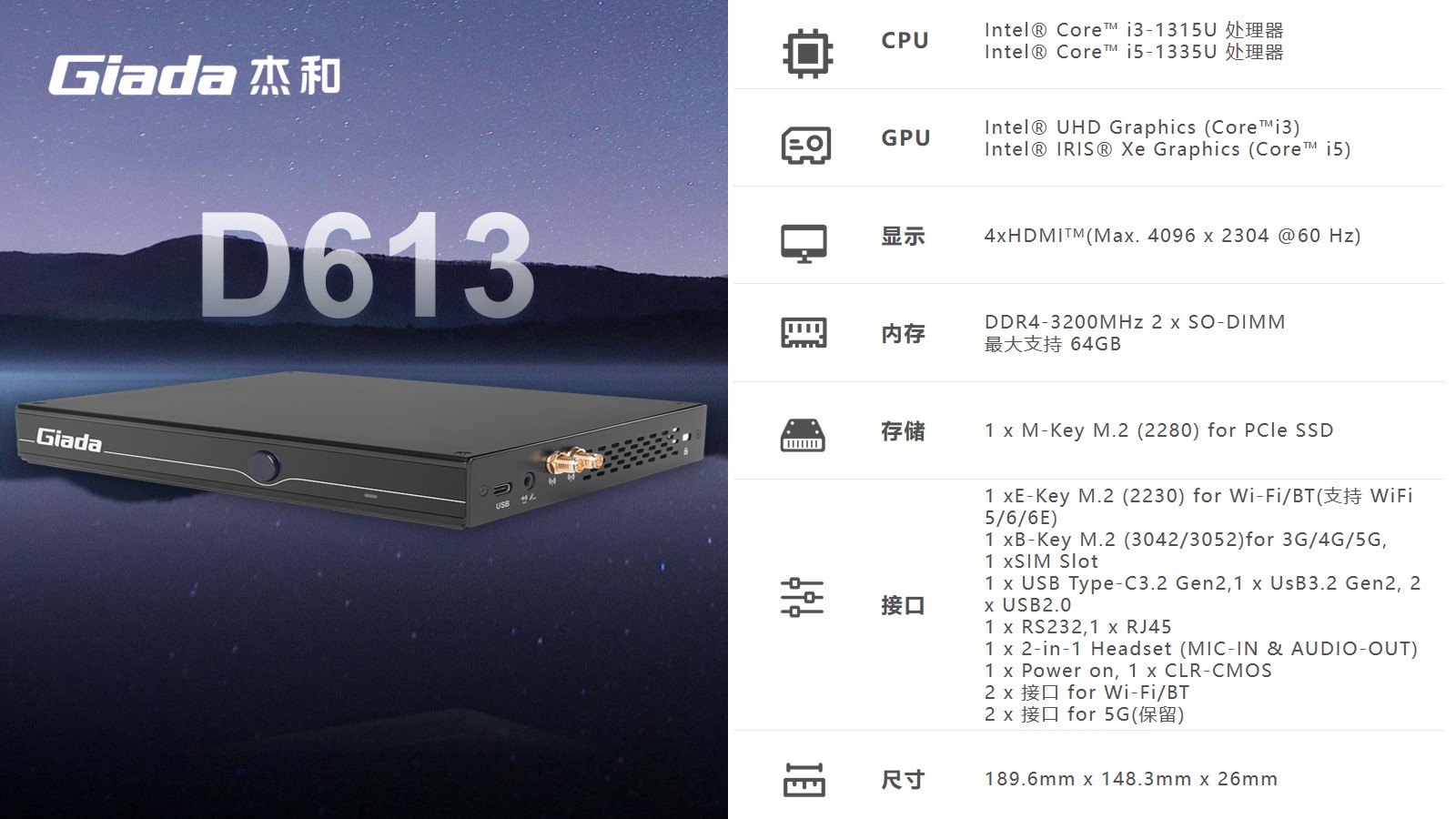 南宫NG·28(中国)相信品牌力量科技D613可选配Intel®第13代AlderLake i5-1335处理器,作为家用迷你主机来说,足够大的内存容量也可以提升迷你主机的性能表现,更好地支持多任务处理,大型应用程序的运行以及高清视频编辑等任务,拥有的2个SO-DIMM插槽,内存DDR4最大支持64GB的内存容量可以减少系统对硬盘的依赖,提高系统的响应速度。